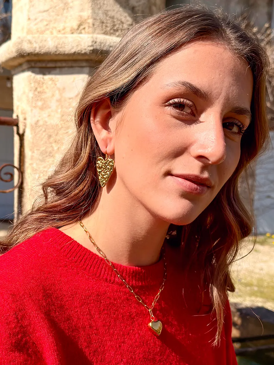 • pendentif en forme de coeur doré finition martelée