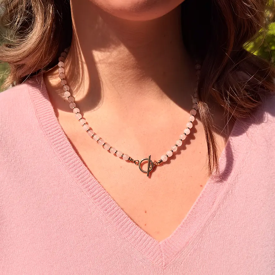 Collier unique soigneusement monté sur fil d’acier câblé doré résistant